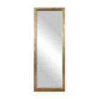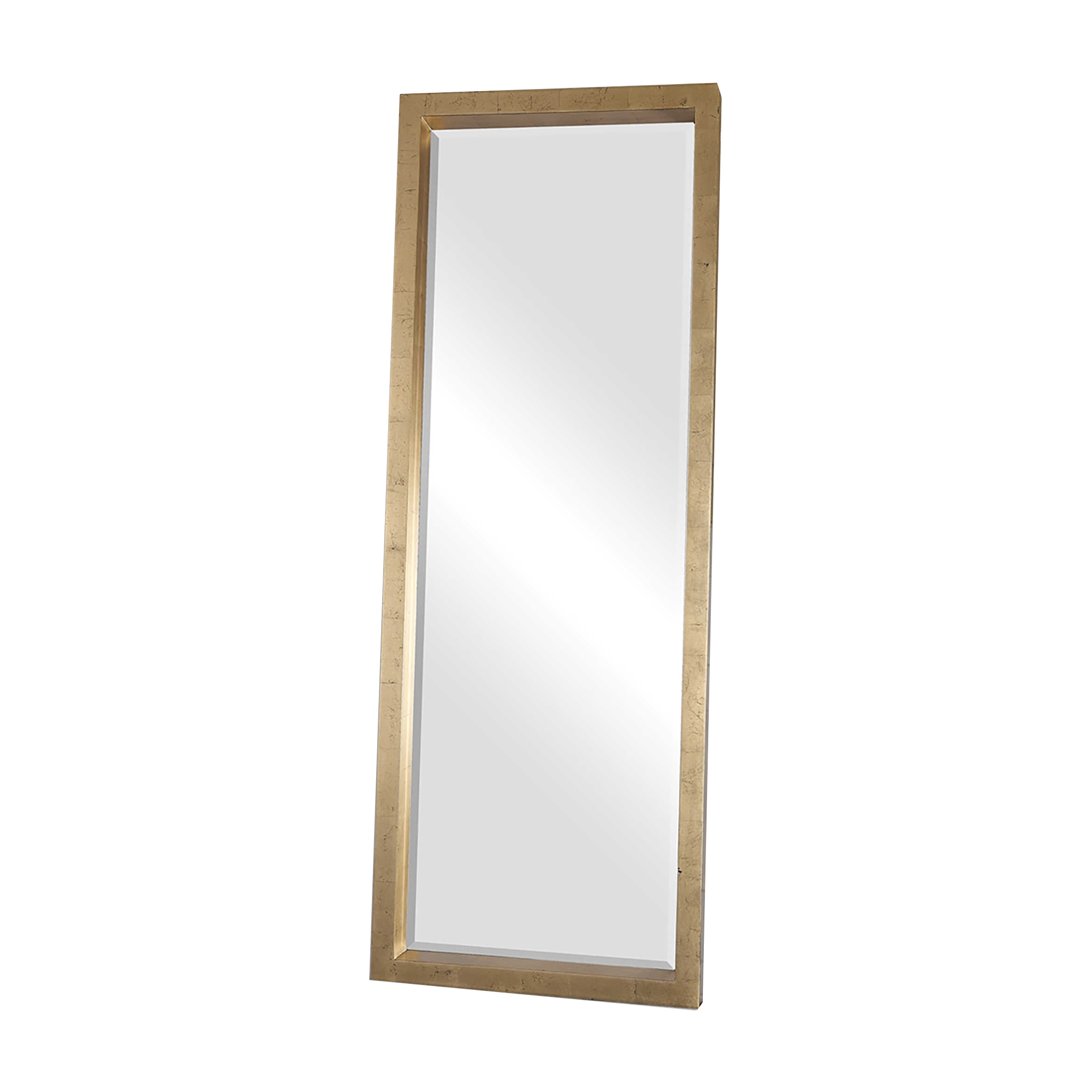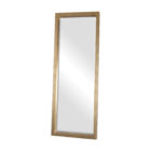 Perfect to use as a dressing mirror or just for accent. This stately mirror features a deep, solid wood frame with a lightly antiqued gold leaf finish. Mirror has a generous 1 1/4″ bevel. May be hung horizontal or vertical.